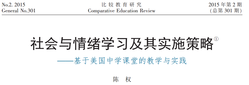 Abstract:Social and emotional learning (SEL)was firstly advanced by American educators, in order to promote students' emotional quotient (EQ), change their attitude to life and learning so that problem behaviors could be reduced. Different from normal social studies, SEL is more integral and comprehensive which not only contains but also widens the positive intervention, including promoting EQ, training social competence, preventing violence, influencing personality, promoting mental healthy and so on. This paper focuses on introducing the connotation of SEL and the teaching strategies in American middle school to provide references for related education and study in our schools.