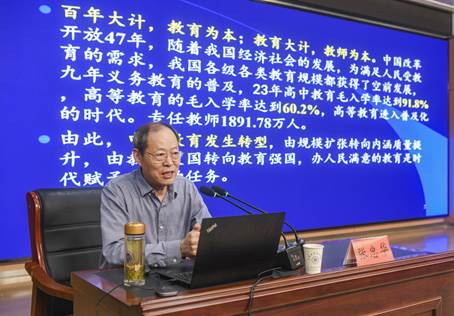 张忠华教授作题为《以教育家精神为指引,提升师德修养》的专题讲座。张教授讲座围绕“教育家精神”的核心内涵展开,强调高校教师应以坚定理想信念、崇高育人情怀和严谨治学态度为指引,全面提升师德修养与职业素养。张忠华教授结合典型教育人物和现实教学案例,深入阐释新时代教师应如何践行“以德立身、以德施教、以德育德”的使命担当。
