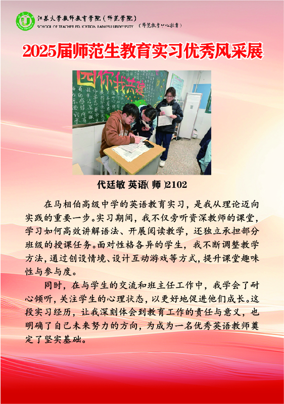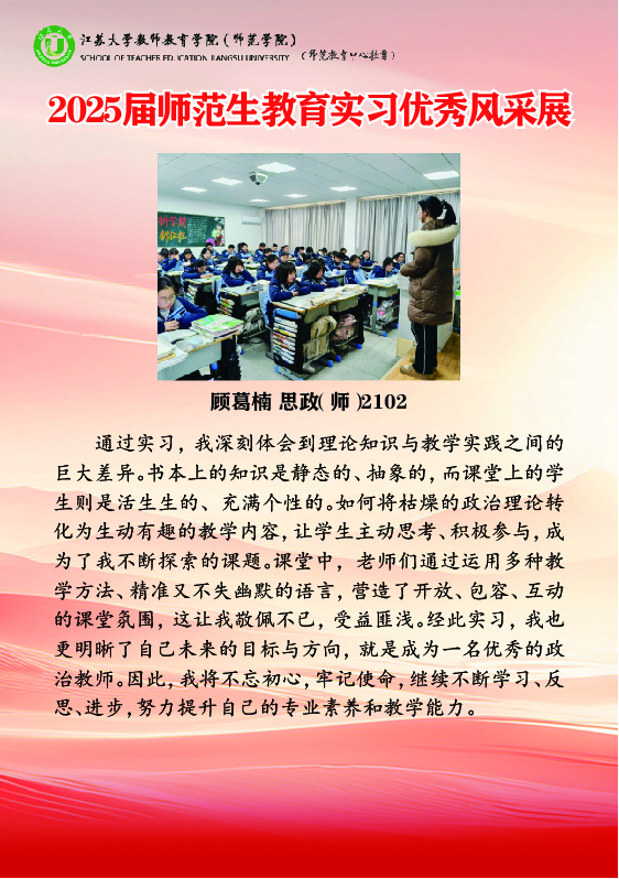 上一条:2025年教育实习优秀带队教师风采展 下一条:2022级师范生教育实习组长工作总结会召开