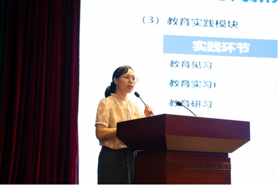 康翠从师范教育历史沿革、师范类专业培养计划、师范类技能竞赛三个方面对师范教育进行详细地介绍,帮助同学们提前做好学业规划和职业生涯规划。康翠为师范生代表发放师范生学术活动记录卡,并合影。